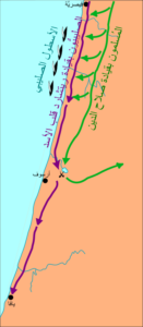 بحلول عام 1192م، قرّر ريتشارد التحرُّكَ من جديد، فتَرَك حاميات في المدن الساحلية يافا وعسقلان، ثم خرج بجيشه باتجاه القدس، لكن الخطابات توالت عليه من إنجلترا تحثّه على العودة سريعًا، فيما عانى من نقصِ الموارد في الصحراء، وغياب الآبار الصالحة للشرب، خاصةً في الحرِّ الشديد وأشعّة الشمسِ الحارقة، ولم يجدوا حتى أشجارًا يختبئون في ظلِّها؛ فسقط عددٌ كبير من القتلى، وضعف الجيش، وانتشرت الأمراض من جديد. قرّر ريتشارد أخيرًا إنشاء معسكره في مدينة ” بيت نوبة أو بيت نقّوبا” على بعد تقريبًا 10 كم من القدس، بينما تراجع صلاح الدين للقدس، وأقام فيها التحصينات وحافظ على جيشه سالمًا، بينما واجهته أزماتٌ مالية وتمرّداتٌ في جيشه، خاصةً مع تقدمه في العمر، ومرضه المتكرر، وضُعْف سلطته على الأمراء.