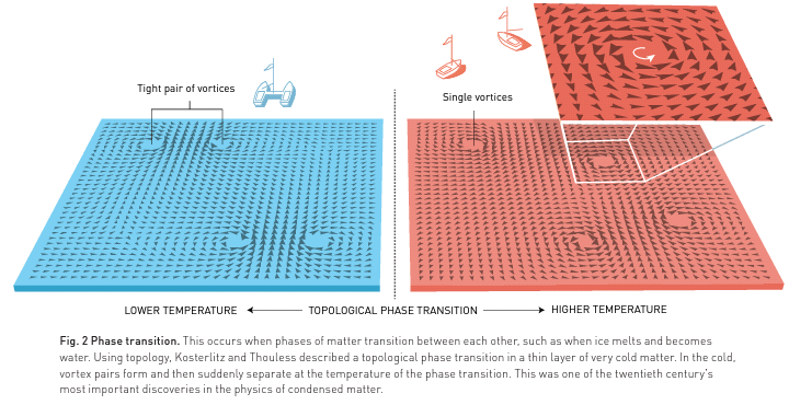 حصل كل من (ديفيد ثوليس)الفيزيائي بجامعة واشنطن و(فريدرك دنكان هالدين) الفيزيائي بجامعة برينستون و(مايكل كوستيرليتز) الفيزيائي بجامعة براون بجائزة نوبل في الفيزياء 2016م؛ عن إنجازاتهم النظرية في فهم أغرب حالات المادة في درجات حرارة القريبة من الصفر المطلق