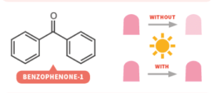 الكثير من المركبات الكيميائية تفقد لونها وتبهت مع مرور الوقت بسبب التعرض لأشعة الشمس، لذلك تضاف بعض المركبات الكيميائية لطلاء الأظافر لمنعه من تغيير لونه مثل [4] Benzophenone-1 .