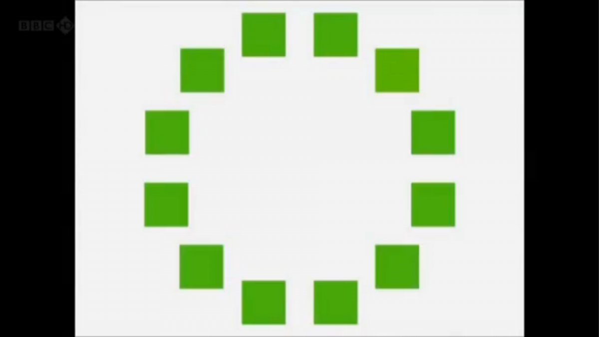 ولاختبار ما إذا كان هذا يعني عدم رؤيتهم للون الأزرق حقًا، قام بعرض دائرة تحتوى على إحدى عشر مربعًا أخضر وواحدًا أزرق بشكلٍ واضح أمام أفراد القبيلة.