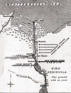 فى أواخر يناير من عام 1915، أرسلت تركيا قواتها المسلحة لتشنّ حربًا على الإنجليز في مصر لاحتلال قناة السويس. زحفت قواتها عبر سيناء حتى وصلت إلى قناة السويس. وهنا، تصدّت لها القوات التي كانت على ضفاف القناة تحت الراية البريطانية، وكانت معظمها من المصريين والهنود تحت قيادة بعض الضباط الأستراليين والنيوزلنديين. واستطاعت تلك القوات صدّ الهجوم التركي وإجباره على التراجع والانسحاب من سيناء بعد ستة أيام بالضبط. فكانت هذه هي حرب الأيام الستة الأولى.