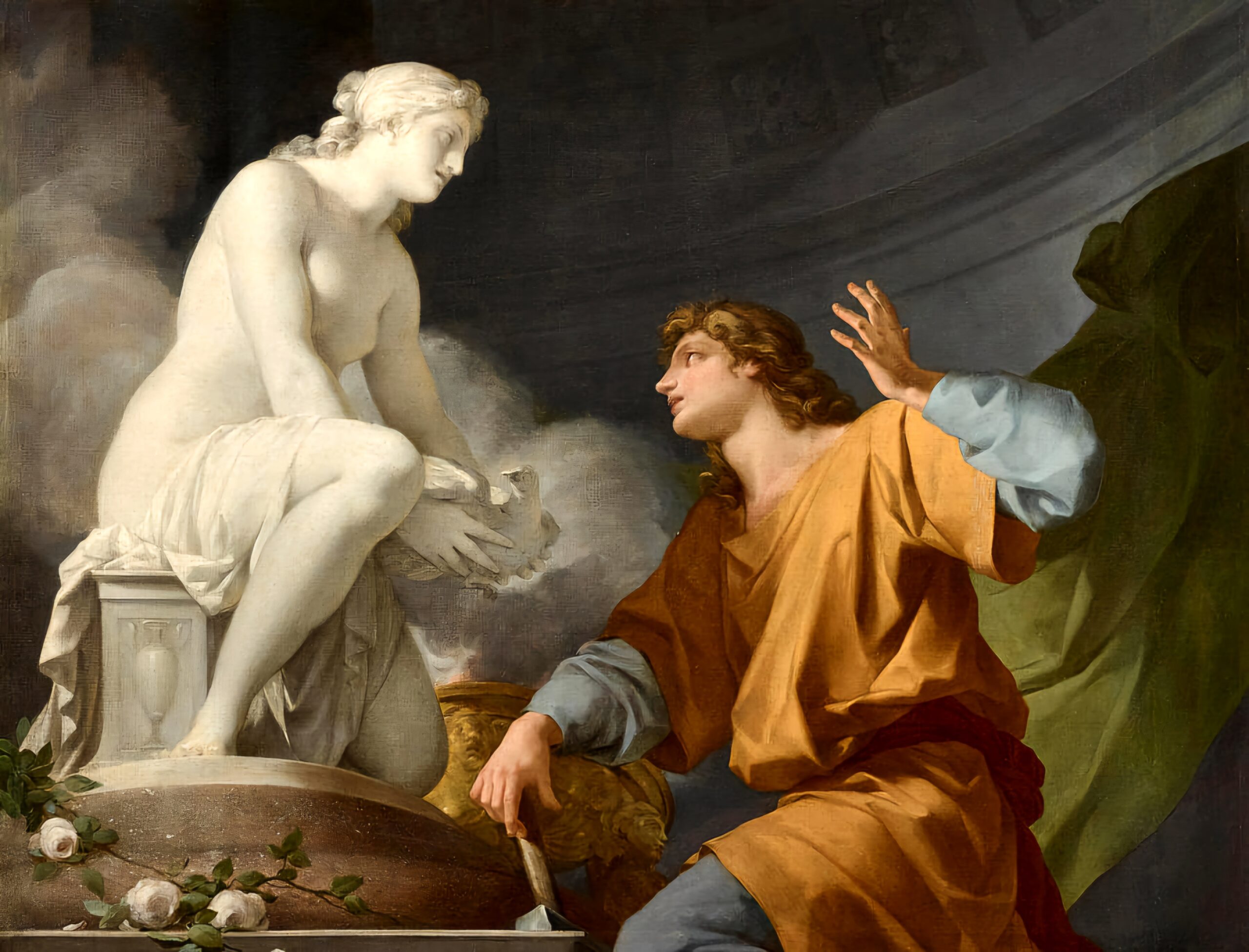 كما أدرك بيجماليون أيضًا أن منح الحياة لتمثاله كان مخاطرةً بفقدان بريقه المثالي. في كلتا الحالتين، كان كلٌ منهما يطارد فكرة، لكي تتحقّق، كان عليهما أن يواجها احتمال انهيارها أمام الواقع.