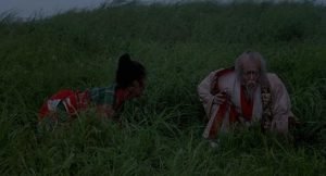 ظهر العشب في مشهدين في الفيلم، مشهد الصيد ومشهد جنون هديتورا، والعشب كرمز بوذي يعني العمر المديد، أو يمكن تأويله هنا على أنه رحلة هديتورا الطويلة للتكفير عن آثامه.
